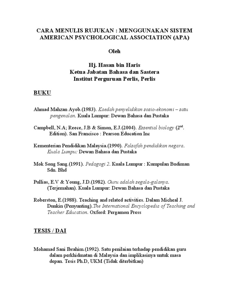 Penulisan Rujukan Mengikut Format Apa Contoh 1